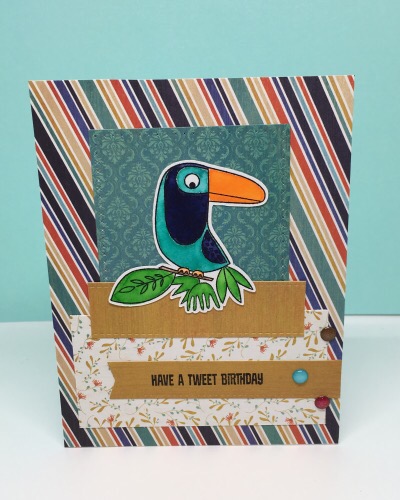 I needed to make a bird card for a swap and used MFT’s Birds of Paradise set along with their weekly sketch challenge.